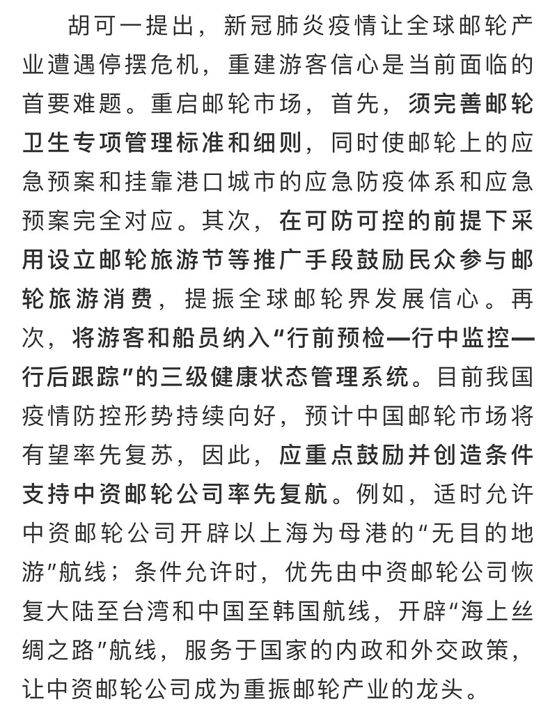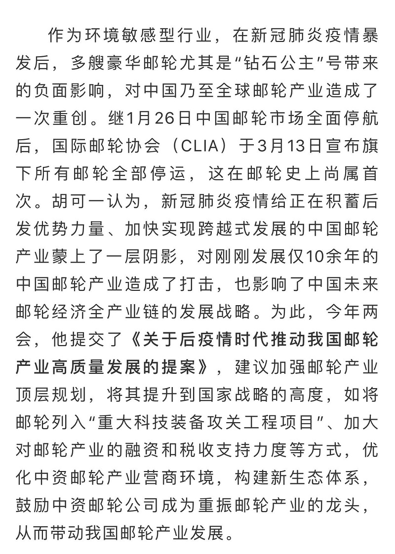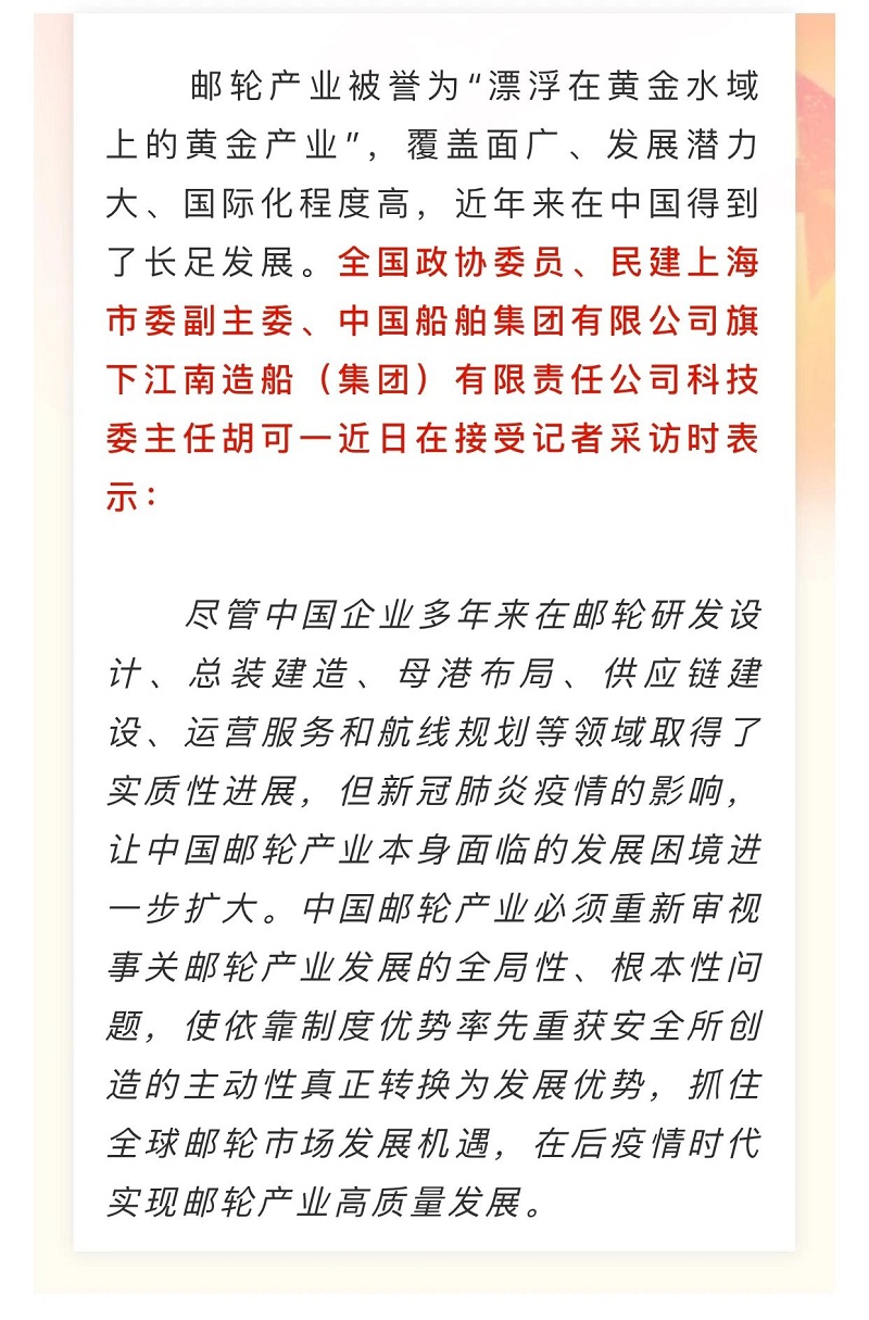 船舶看兩會(huì)| 全國政協(xié)委員胡可一:審視根本性問題,推動(dòng)郵輪業(yè)高質(zhì)量發(fā)展