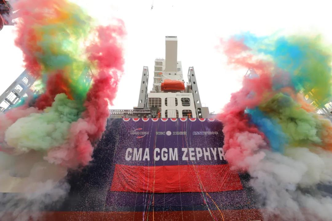 兩年前,法國巴黎當地時間2019年3月25日,在中國國家主席習近平和法國總統馬克龍的見證下,中國船舶集團有限公司與法國達飛海運集團簽署戰略合作協議,中國船舶集團旗下中船貿易攜手江南造船、滬東中華,與達飛集團簽署了10艘15000TEU超大型集裝箱船建造合同。時隔兩年,首制船順利交付,標志著中法兩國領導人見證簽署的戰略合作框架協議結出最新成果,該系列大型箱船將陸續進入交付期。