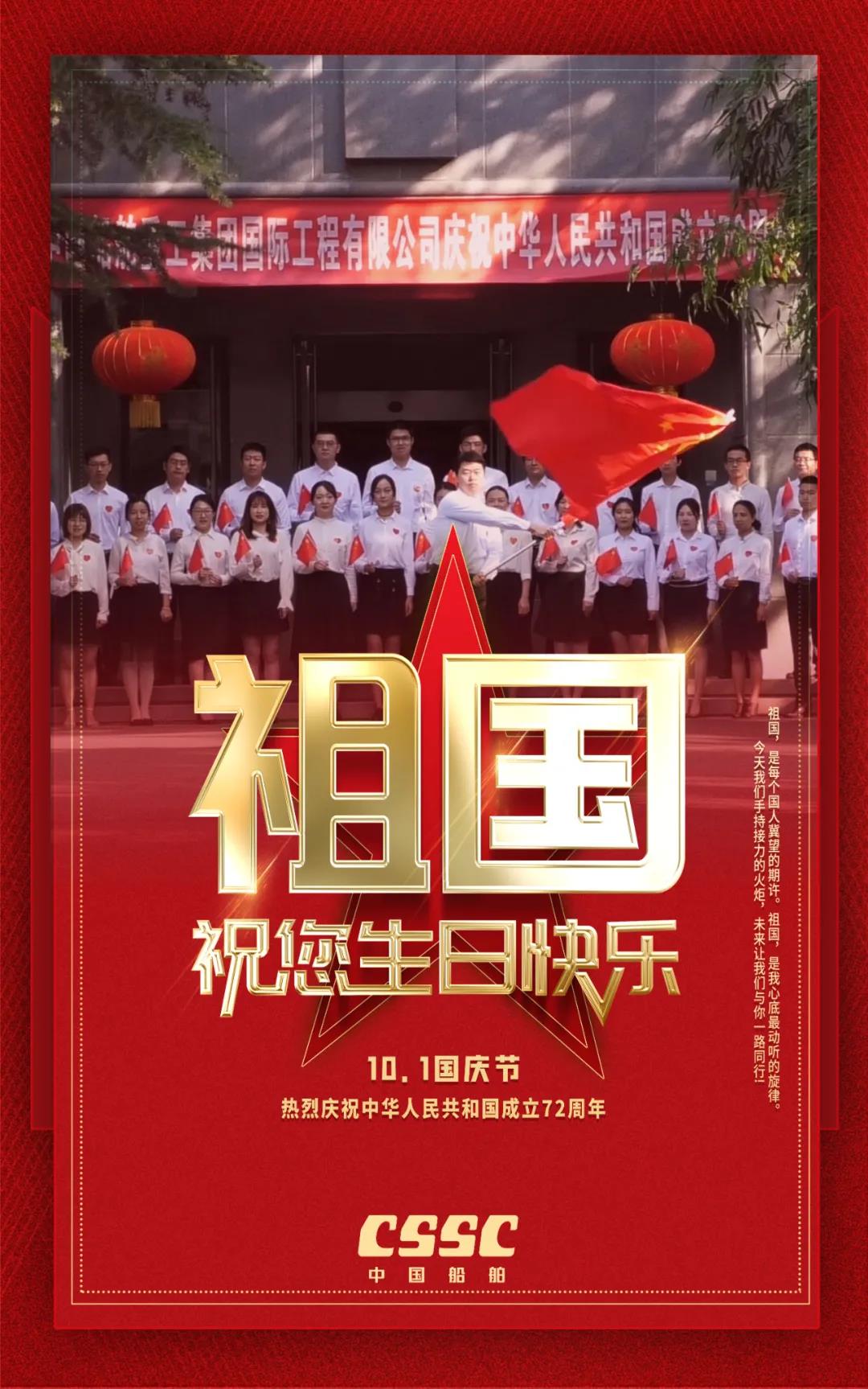 欣望江山千里秀,歡送祖國萬年春,中國船舶七〇九所祝福新中國72歲生日快樂,“中國號”巨輪劈波斬浪再創新輝煌!