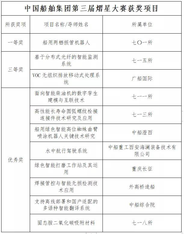 中國(guó)船舶集團(tuán)高度重視本屆熠星大賽工作,負(fù)責(zé)承辦了先進(jìn)制造技術(shù)賽道。該賽道共征集項(xiàng)目1111個(gè),占大賽項(xiàng)目總數(shù)的三分之一。積極組織成員單位報(bào)名參賽,5大賽道共報(bào)名44項(xiàng),獲得一等獎(jiǎng)1項(xiàng)、三等獎(jiǎng)2項(xiàng)、優(yōu)秀獎(jiǎng)8項(xiàng);推薦大賽常駐導(dǎo)師10名,飛行導(dǎo)師2名,3人獲杰出導(dǎo)師獎(jiǎng)、4人獲大賽優(yōu)秀導(dǎo)師獎(jiǎng);在本次大賽中總計(jì)獲獎(jiǎng)19個(gè),獲獎(jiǎng)?lì)愋秃蛿?shù)量上較往屆均取得顯著提升。