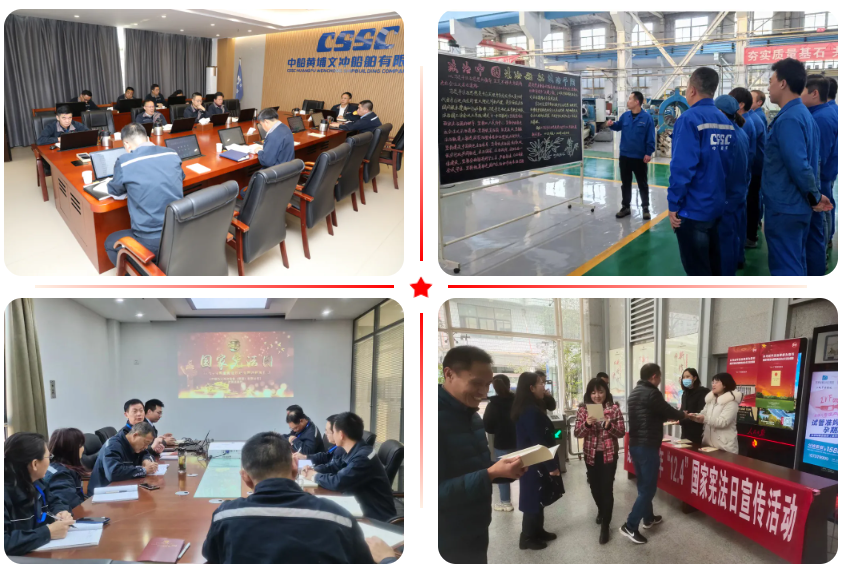 今年12月4日是第八個國家憲法日,11月29日~12月5日是第四個“憲法宣傳周”。中國船舶集團總部和各成員單位以本次國家憲法日和“憲法宣傳周”為契機,深入開展了2021年“法治宣傳周”活動,在集團上下掀起了尊法學法守法用法的熱潮,營造了濃厚的法治氛圍。