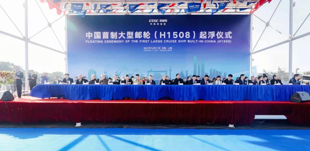 中國船舶集團黨組書記、董事長、大型郵輪工程總指揮雷凡培,上海市人大常委會副主任、市總工會主席莫負春,中國船舶集團黨組成員、副總經理孫偉,以及上海市經信委、上海市交通委和上海市浦東新區、寶山區、黃浦區等有關負責人出席起浮儀式。