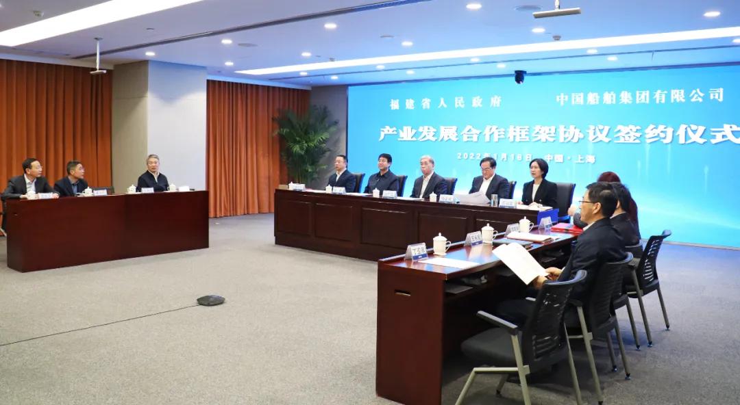 1月18日,中國船舶集團有限公司與福建省人民政府通過“云簽約”方式簽署戰(zhàn)略合作協(xié)議。中國船舶集團黨組書記、董事長雷凡培,黨組副書記、總經理楊金成,黨組副書記、董事杜剛,黨組成員、總會計師賈海英,黨組成員、副總經理盛紀綱;福建省委書記尹力,省委副書記、代省長趙龍,省委常委、常務副省長郭寧寧,省委常委、秘書長吳偕林,副省長康濤出席簽約儀式。盛紀綱、郭寧寧分別代表雙方在協(xié)議上簽字。