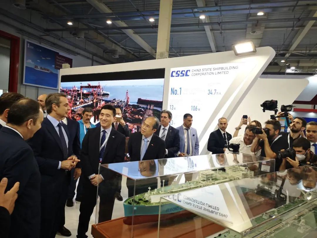 展會期間,中國船舶集團全面展示了船海產業領域完整的產品體系與前瞻性的設計營銷理念,體現了中國船舶集團在行業中強勁的品牌影響優勢與國際競爭實力。中國船舶集團展臺吸引了希臘總理米佐塔基斯、中國駐希臘大使肖軍正等政界高層駐足參觀,聽取講解,同時也吸引了來自全球的主流知名船東和國際各大船級社代表以及設備配套客戶的到訪參觀,了解中國船舶集團最新發展情況,交流探討未來合作機會。
