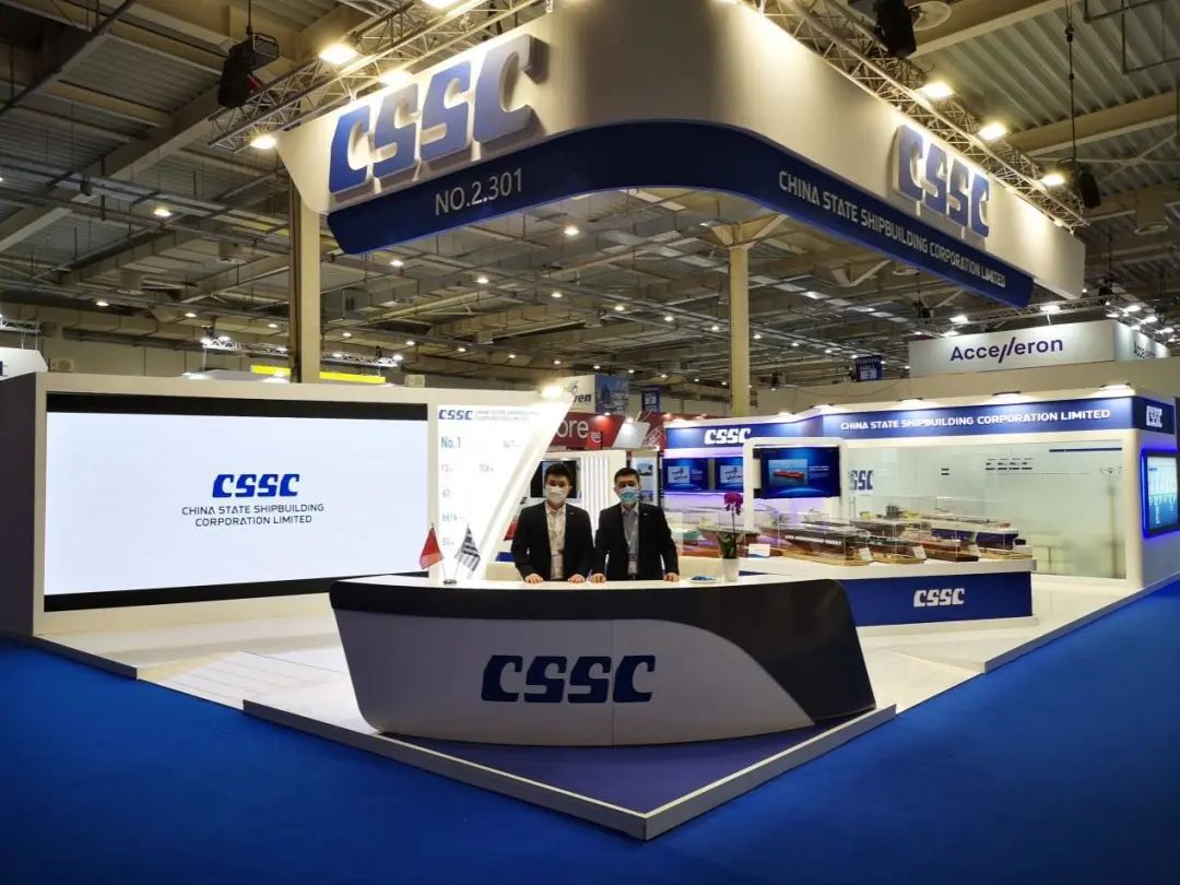 此次展會上,中國船舶集團展臺面積150平方米,參展展品涵蓋船舶、海洋工程、動力裝備等產品模型,包括13.5萬總噸大型郵輪、17.4萬立方米大型LNG運輸船、1.86萬立方米LNG加注船、2.3萬箱超大型雙燃料集裝箱船、1.5萬箱集裝箱船、9.8萬立方米VLEC、2500客位/3800米車道客滾船、3000米深水半潛式鉆井平臺、30萬噸FPSO、23萬立方米LNG FPSO、17.4萬立方米LNG-FSRU等一系列具有國際競爭力的高端船海產品,系統地推介了中國船舶集團船海產業總體實力、船海產品整體體系以及研發、設計、建造能力和未來發展前景;與此同時,展會上全方位展示了中國船舶集團未來綠色低碳船型研發情況,突出體現了中國船舶集團執行國際海事規則要求,踐行全球環保理念的主動作為與實際行動。