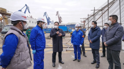 上午,楊金成一行先后來到滬東中華LNG裝焊車間、船塢碼頭和在建艦船,調研檢查年度生產任務完成情況和安全生產執行情況,對滬東中華全力應對疫情和極端氣候帶來的雙重挑戰,企業上下勠力同心、共克時艱,出色完成2022年度生產經營任務給予充分肯定。楊金成指出,新的一年,滬東中華要進一步加大企業改革、管理創新、轉型升級和提質增效的力度,特別是要高標準、高質量、高效率地推進長興二期工程建設,力爭早日投產、早日出船。