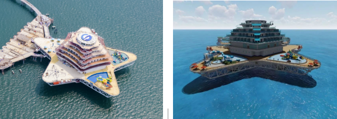 以濱海城市為依托,該方案重點(diǎn)建設(shè)需求旺盛、基礎(chǔ)好、見效快的“海洋文旅+深海養(yǎng)殖+海上風(fēng)電+海洋信息管網(wǎng)”4個(gè)要素單元,釋放旅游、養(yǎng)殖、綠色能源耦合效應(yīng)。綜合體采用模塊化設(shè)計(jì)、區(qū)域化協(xié)同部署,由濱海向深遠(yuǎn)海帶狀輻射,布局建設(shè)游輪游艇群、養(yǎng)殖文旅平臺(tái)、深海養(yǎng)殖產(chǎn)業(yè)園、分布式海上風(fēng)電場(chǎng)及智能微電網(wǎng)、深海移動(dòng)養(yǎng)殖工廠和海洋信息管網(wǎng)等風(fēng)漁文旅結(jié)合項(xiàng)目。以郵輪游艇連接海上設(shè)施,構(gòu)建海上旅游娛樂交通網(wǎng),以中小型郵輪航線實(shí)現(xiàn)沿海城市綜合體間串聯(lián),構(gòu)建沿海城市海上旅游觀光帶,同時(shí)培育郵輪與康養(yǎng)休閑岸海互動(dòng)融合模式,捕捉、帶動(dòng)、滿足多元化潛在消費(fèi)需求,打造風(fēng)漁文旅等一二三產(chǎn)業(yè)融合新業(yè)態(tài),形成沿海藍(lán)色海洋經(jīng)濟(jì)帶。