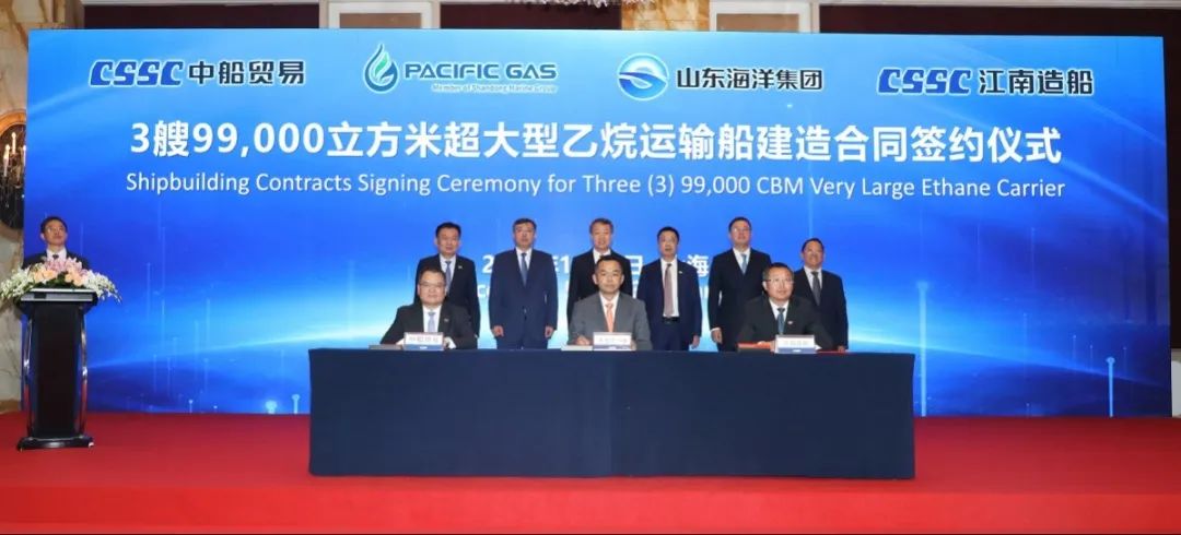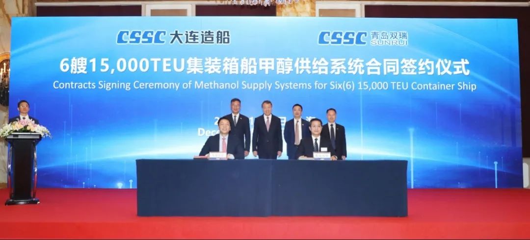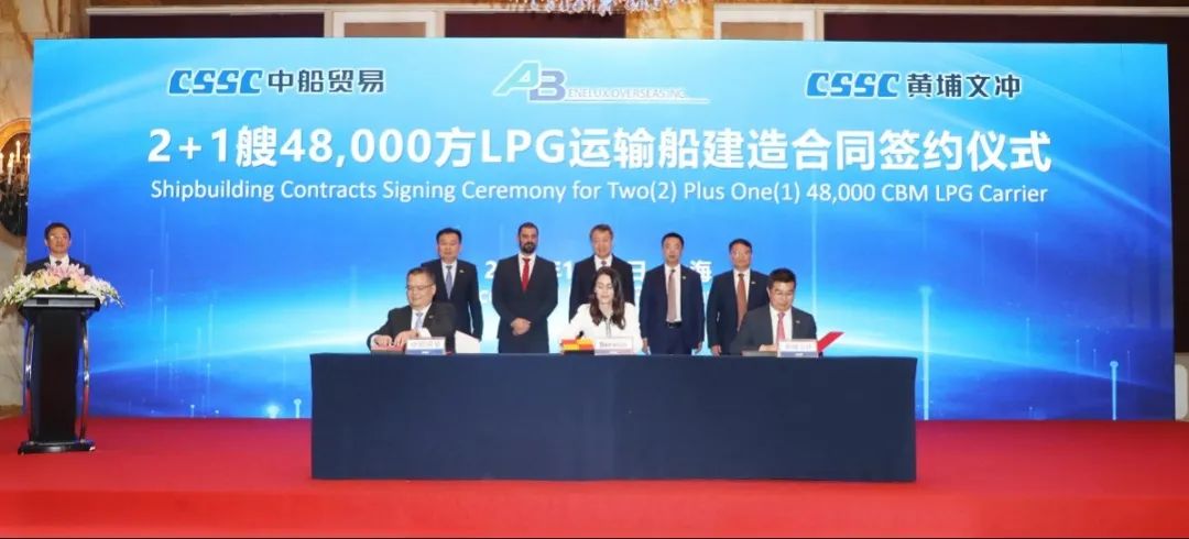 簽約儀式上,外高橋造船、中船貿(mào)易與Seaspan、現(xiàn)代Glovis簽署了6+4艘10800車LNG雙燃料PCTC船項目;廣船國際、中船貿(mào)易與HMM、現(xiàn)代Glovis簽署了6+4艘10800車LNG雙燃料PCTC船項目;北海造船、中船貿(mào)易與北銀金租、山東海運(yùn)簽署了4艘325000噸超?型甲醇雙燃料礦砂船項目;江南造船、中船貿(mào)易與太平洋氣體簽署了3艘99000方VLEC船項目;黃埔文沖、中船貿(mào)易與Benelux公司簽署了2+1艘48000方LPG船項目;中船澄西、中船貿(mào)易與工銀金租簽署了4艘82600噸散貨船項目;大連造船與七二五所青島雙瑞簽署了15000TEU集裝箱船甲醇供應(yīng)系統(tǒng)項目。