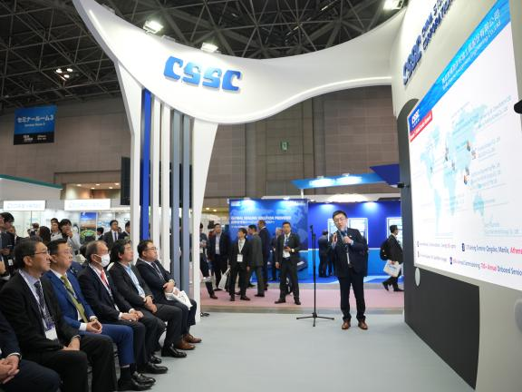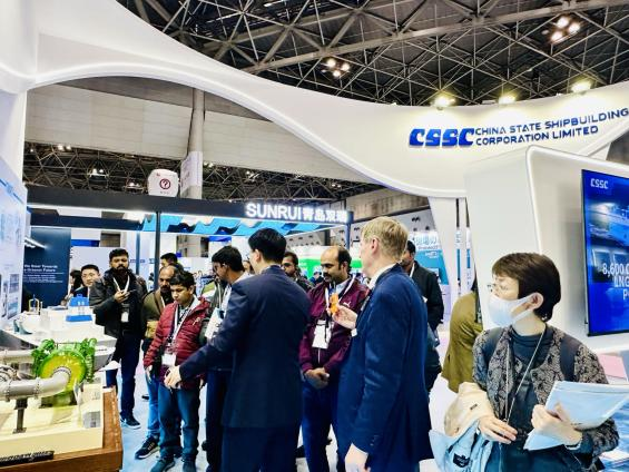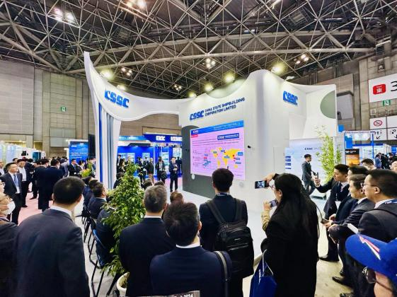 此次參展是集團(tuán)公司首次以整體形象亮相日本東京國(guó)際海事展,以“共筑未來(lái)”為參展主題,設(shè)置集團(tuán)總體區(qū)、低碳航運(yùn)解決方案區(qū)、低碳環(huán)保配套設(shè)備區(qū)、未來(lái)船型區(qū)共4個(gè)展示區(qū)域,重點(diǎn)展示了引領(lǐng)行業(yè)發(fā)展的新一代船舶產(chǎn)品、“綠色、智能”的配套設(shè)備,以及面向未來(lái)市場(chǎng)需求的船型設(shè)計(jì)方案,充分彰顯中國(guó)船舶集團(tuán)的國(guó)際化品牌形象和引領(lǐng)國(guó)際船舶科技發(fā)展的創(chuàng)新活力。