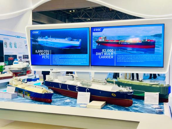 展會(huì)期間,國(guó)產(chǎn)大型郵輪、17.4萬(wàn)立方米LNG船、8600車(chē)LNG雙燃料PCTC、9.9萬(wàn)立方米VLEC、WinGD 9X92DF-2.0(-iCER)主機(jī)、船用LNG 供氣系統(tǒng)、船用碳捕捉系統(tǒng)、大口徑岸基智能裝卸系統(tǒng)等代表性產(chǎn)品悉數(shù)亮相,獲得海外市場(chǎng)高度關(guān)注。