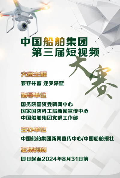 2024年是新中國成立75周年,也是全面貫徹黨的二十大精神的關鍵之年。這一年,中國船舶集團以習近平新時代中國特色社會主義思想為指導,全面實施“1234”高質量發展方略,以“三贏”提質效、以改革求突破、以創新促發展,全面開創建設世界一流船舶集團新局面。為更加全面生動展示中國船舶人凝心聚力、砥礪奮發,建設世界一流,向新中國成立75周年獻禮的精神風貌與奮斗熱情,中國船舶集團新聞宣傳中心/中國船舶報社組織開展“兼容并蓄 逐夢深藍”為主題的中國船舶集團第三屆短視頻大賽。