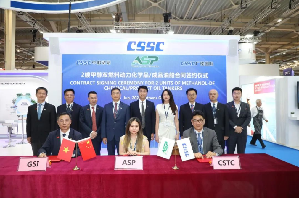 中船貿易、廣船國際與ASP公司2艘5萬噸MR甲醇雙燃料油輪項目簽約儀式