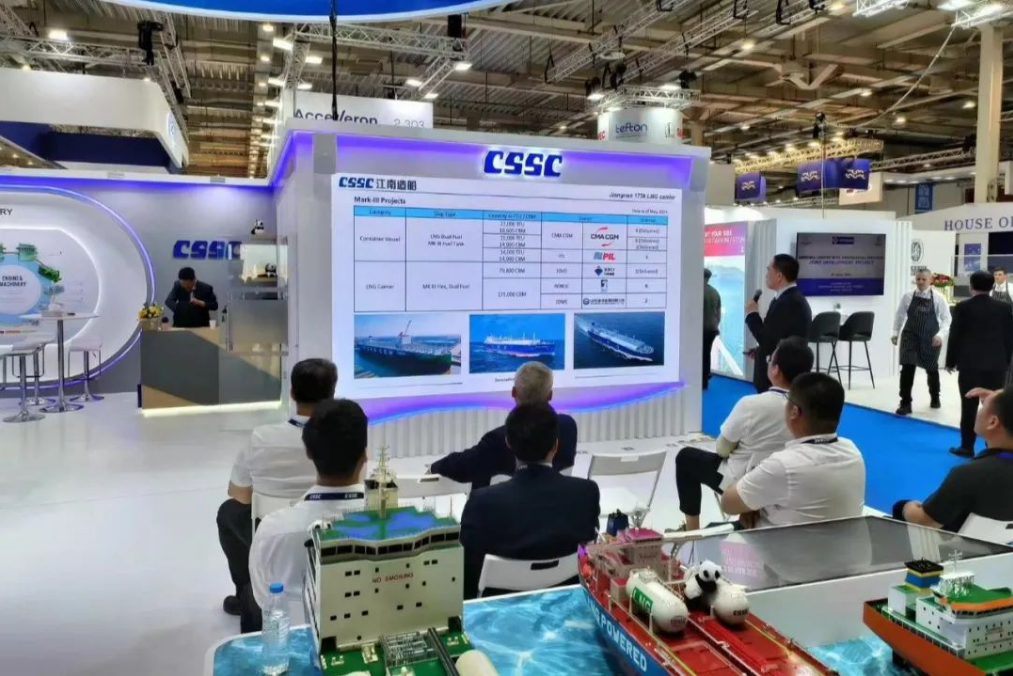 展會期間促成集團公司多家成員單位船海項目成功簽約,共計超50億元人民幣,包括中船貿易、廣船國際與EPS公司4艘11萬噸LRII型LNG雙燃料油輪項目簽約、與ASP公司2艘5萬噸MR甲醇雙燃料油輪項目簽約,中船貿易、大連造船與CAPITAL公司2艘30萬噸VLCC建造項目簽約,另外還簽訂了40多億元新造船項目意向書;同時,參展成員單位在集團公司展臺上開展了豐富的推介活動,包括江南造船“綠色船型家族”產品推介會、中船系統院“羅經進入光纖時代”產品推介會、七一一所“全球首個全流程船用碳捕捉系統案例分享會”,吸引了眾多國際船東、船級社和設備廠商前來觀摩,并共同探討未來合作機遇。