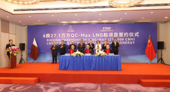 9月9日,三方新簽了6艘全球最大27.1萬(wàn)立方米超大型LNG船訂單。至此,三方已累計(jì)簽訂24艘27.1萬(wàn)立方米超大型LNG船、12艘17.4萬(wàn)立方米大型LNG船,以載氣量計(jì),位居全球各船廠之首??ㄋ柲茉词聞?wù)國(guó)務(wù)大臣、卡塔爾能源總裁兼首席執(zhí)行官薩阿德·謝里達(dá)·阿爾卡比,上海市副市長(zhǎng)陳杰,中國(guó)船舶集團(tuán)黨組成員、總會(huì)計(jì)師賈海英等出席簽約儀式。