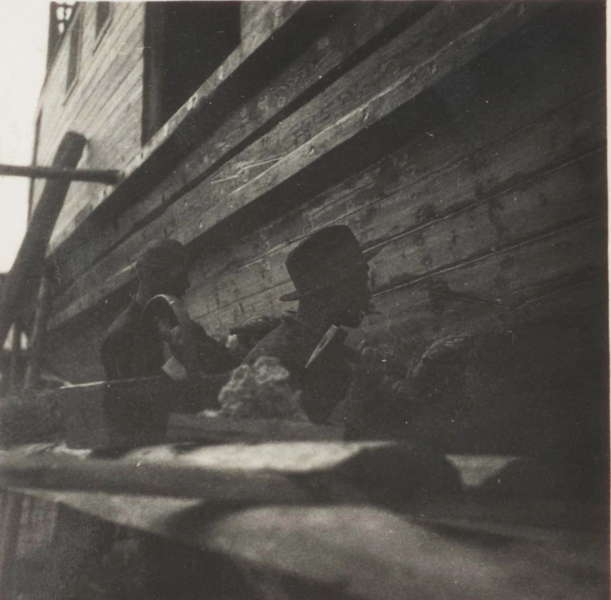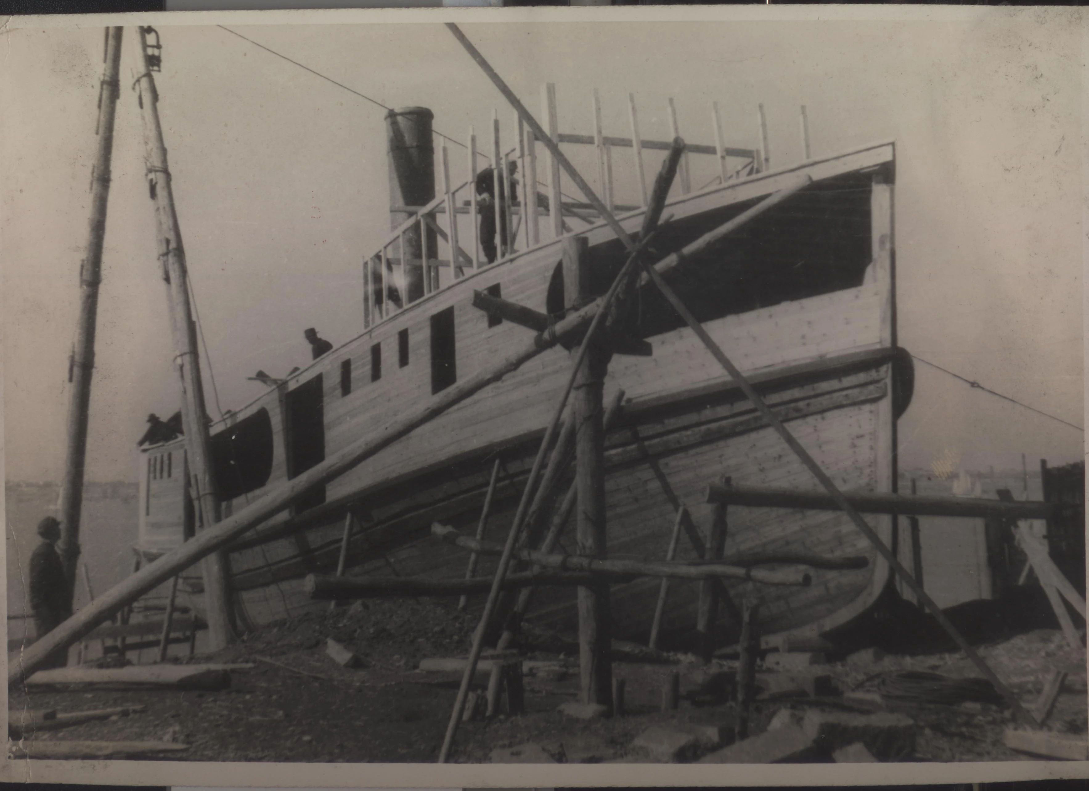 1934年武漢,上世紀30年代,武昌造船成立之初,工人們以手工作業“敲敲打打”形式開展修造船業務。修造的船只大多為100~300噸、鋼肋骨與木殼結構,僅有少量是鋼鉚接船體。建造的船只只能在長江上航行跑跑運輸。為了生存和救國,船廠還建造一些農用機械器具、槍支,以輔助民生、支援抗日。