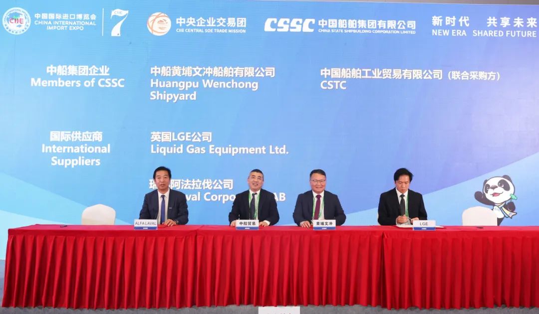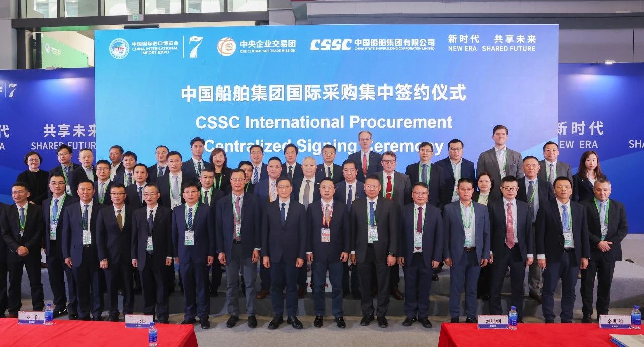 中國船舶集團(tuán)有限公司黨組成員、副總經(jīng)理盛紀(jì)綱應(yīng)邀參加第七屆進(jìn)博會暨虹橋國際經(jīng)濟(jì)論壇開幕式,出席11月6日下午舉行的第七屆進(jìn)博會國資委中央企業(yè)交易團(tuán)中國船舶交易分團(tuán)采購集中簽約儀式并致辭。
