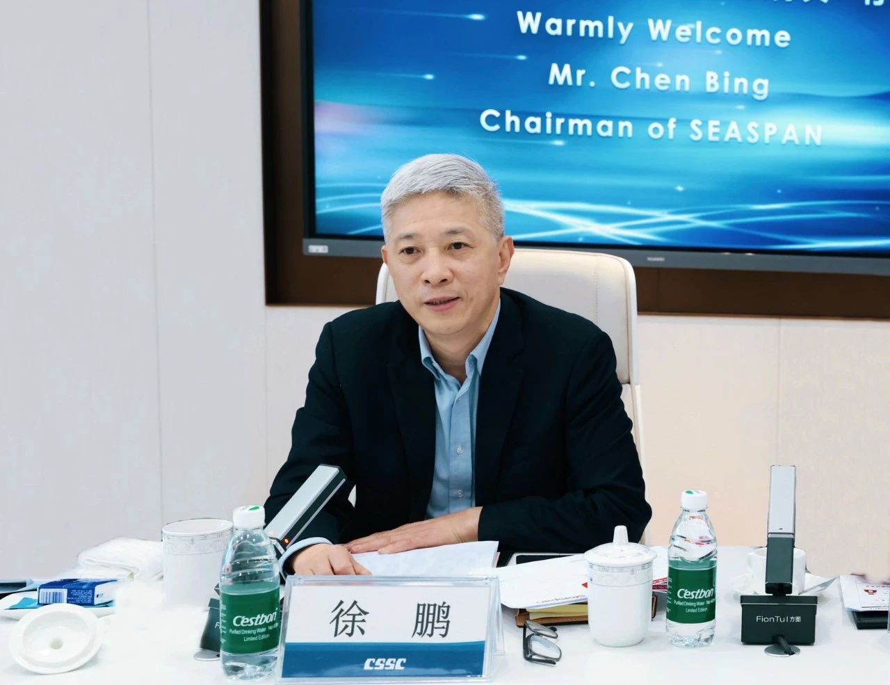 徐鵬對(duì)陳兵一行的來(lái)訪表示歡迎,并感謝Seaspan公司對(duì)中船集團(tuán)的長(zhǎng)期信任與支持。徐鵬表示,中船集團(tuán)將持續(xù)提升自身綜合能力,努力為客戶(hù)提供更優(yōu)質(zhì)的產(chǎn)品和服務(wù)。Seaspan公司是全球最大的獨(dú)立集裝箱船租賃船東公司,與中船集團(tuán)在長(zhǎng)期合作中結(jié)下了深厚友誼。未來(lái),希望雙方建立常態(tài)化溝通交流機(jī)制,在船舶建造與升級(jí)改造、國(guó)際船海市場(chǎng)拓展、船舶全生命周期運(yùn)維、綠色能源開(kāi)發(fā)等方面持續(xù)深化進(jìn)一步合作,共同為行業(yè)持續(xù)健康發(fā)展作出應(yīng)有貢獻(xiàn)。