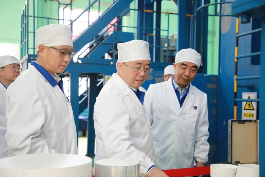 王國強深入生產(chǎn)科研一線,調(diào)研了相關(guān)裝備園區(qū)、車間和重點產(chǎn)品,與全國技術(shù)能手、一線工人就工裝應(yīng)用、工藝工法、安全生產(chǎn)等進行親切交流,聽取了企業(yè)負責(zé)人關(guān)于生產(chǎn)經(jīng)營、科技創(chuàng)新、人才培養(yǎng)、精益管理、發(fā)展規(guī)劃、黨的建設(shè)等方面情況匯報,并對下一步工作提出具體要求。