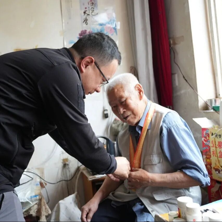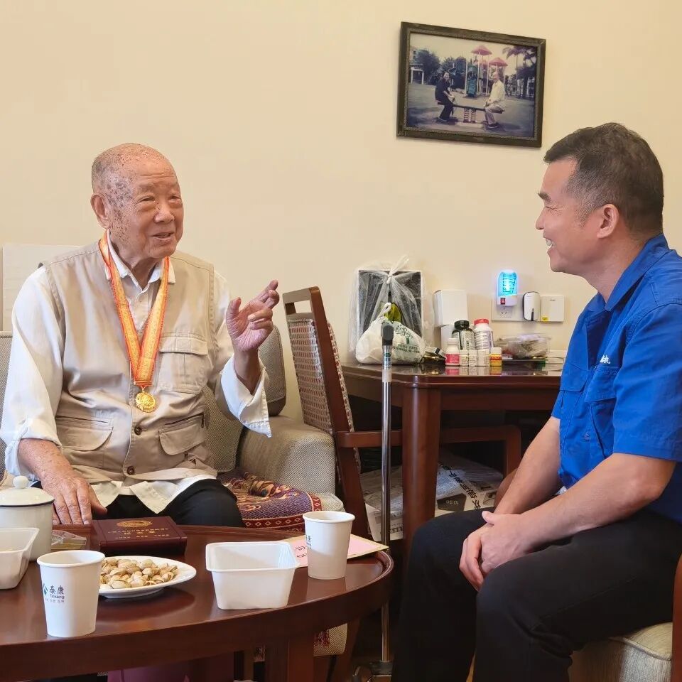 賈海英在焦英杰家中與其促膝交談,悉心詢問他的身體狀況和生活情況,專注聽他講述抗戰(zhàn)時期的崢嶸歲月,頻頻點(diǎn)頭回應(yīng)并追問細(xì)節(jié),衷心地感謝他在抗戰(zhàn)時期作出的巨大犧牲和貢獻(xiàn),并祝愿他身體健康、福壽綿長;同時,叮囑總部各部門及相關(guān)單位要及時關(guān)心、了解抗戰(zhàn)老兵的生活和工作情況,使大家真切感受到集團(tuán)公司黨組的關(guān)懷與溫暖。