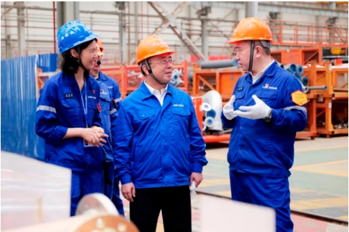 王國(guó)強(qiáng)深入科研生產(chǎn)一線,察看了船塢、智能生產(chǎn)線、重點(diǎn)實(shí)驗(yàn)室和產(chǎn)品,進(jìn)行了安全生產(chǎn)檢查,與一線科研人員、員工進(jìn)行深入交流,聽(tīng)取了生產(chǎn)經(jīng)營(yíng)、科技研發(fā)、人才培養(yǎng)、黨的建設(shè)等情況匯報(bào)。