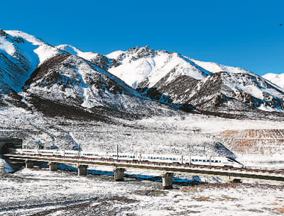 2月26日,位于甘肅、青海兩省交界處的祁連山白雪皚皚,一列動車駛出被譽為世界海拔第一高鐵隧道的祁連山隧道。 成 林?jǐn)z(人民視覺)
