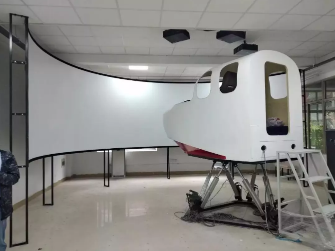 ????該平臺主要由地效翼船駕駛艙、六自由度運動平臺、工控機、激光高清工程投影機、180°金屬環(huán)形硬幕、圖像處理器、飛行仿真軟件等組成。駕駛座艙1:1復制交通運輸部指定的唯一教具——翔州1型地效翼船,在環(huán)境上保持了與真實地效翼船的高度一致,180°金屬環(huán)形硬幕最大程度再現(xiàn)全球各大水域的真實場景,而六自由度運動平臺真實實現(xiàn)了地效翼船升沉、俯仰、滾轉等動作,給學員身臨其境的地效翼船駕控感受。