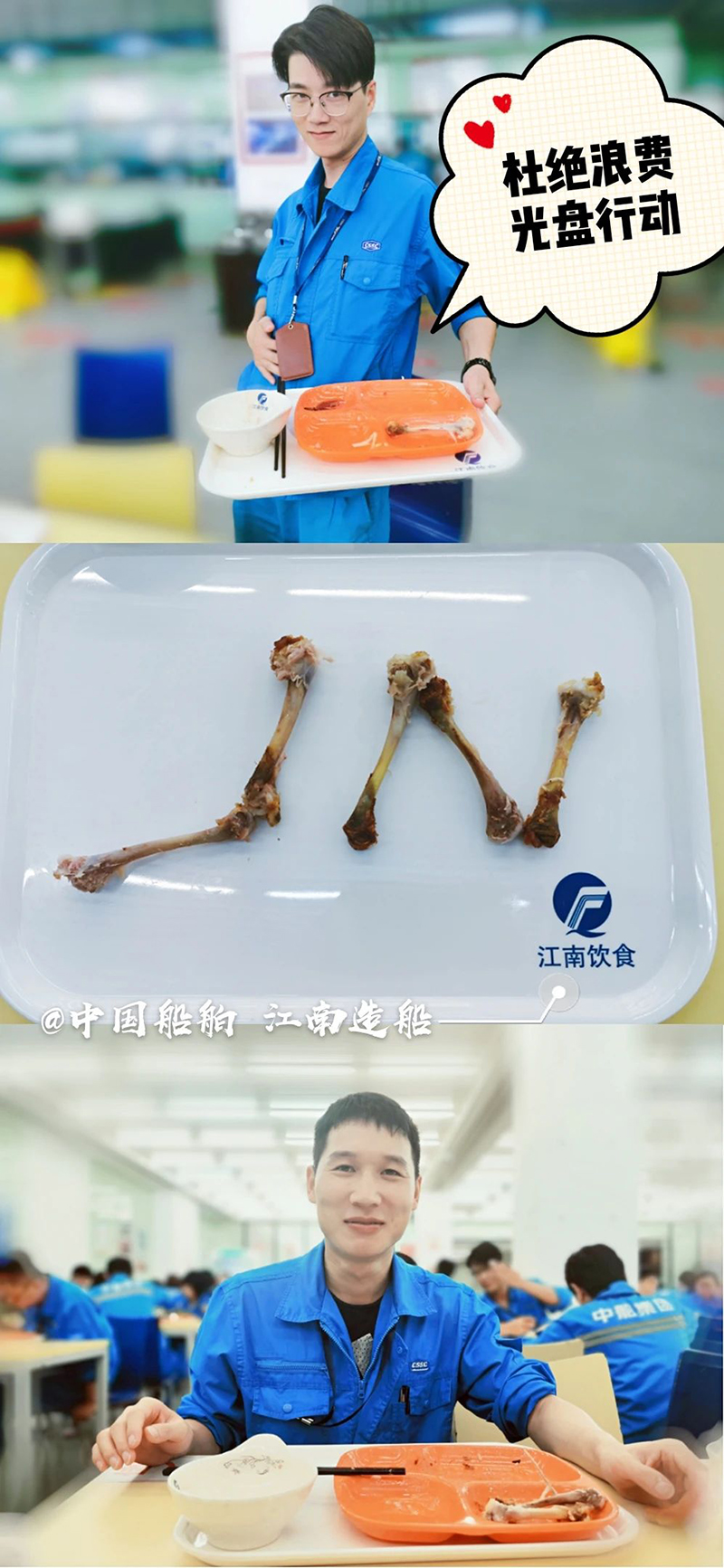 “誰知盤中餐,粒粒皆辛苦?!? 自古以來 敬天惜糧、勤儉節約就是 中華民族傳統美德 中國船舶集團多家成員單位 用實際行動 杜絕“舌尖上的浪費”