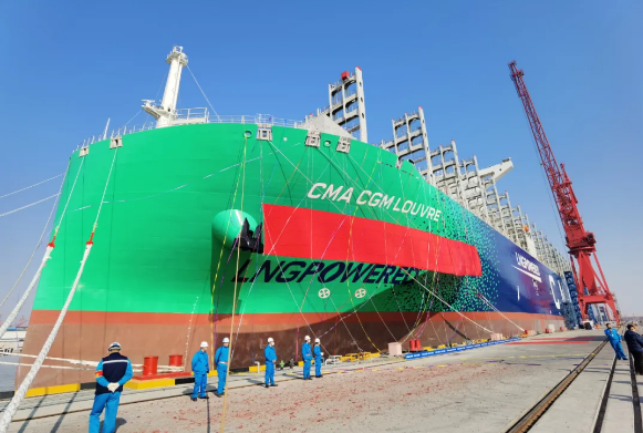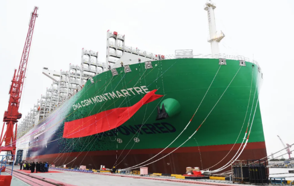 2017年9月,中國(guó)船舶集團(tuán)與法國(guó)達(dá)飛集團(tuán)簽署九艘23000TEU超大型集裝箱船建造合同,截至目前,已交付八艘。 該系列船均由中國(guó)船舶集團(tuán)七〇八所自主研發(fā)設(shè)計(jì),是首次引入液化天然氣雙燃料系統(tǒng)的超大型集裝箱船。因?yàn)樗执笥汁h(huán)保,是名副其實(shí)的海上“巨無霸”,我們都叫它“綠巨人”!