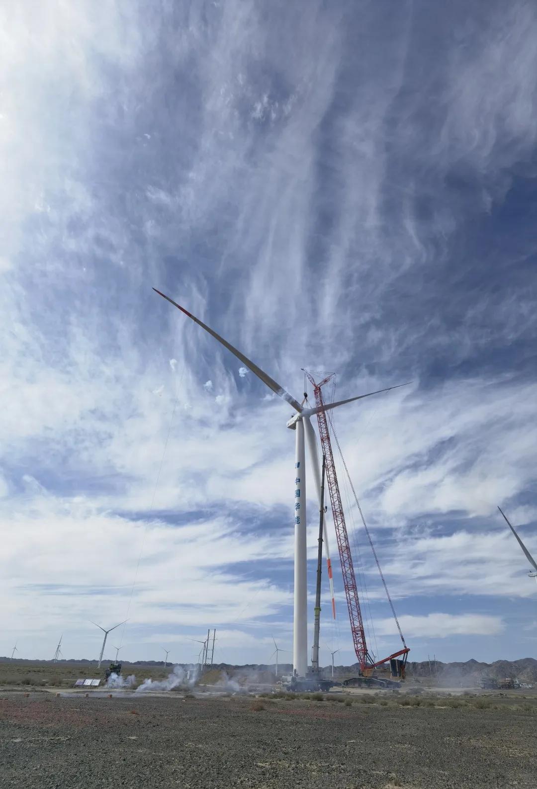 8月20日,中國船舶集團旗下中國海裝順利完成甘肅省單機容量最大風電場——華能甘肅酒泉安北第三風電場C區200MW項目全部風電機組吊裝。