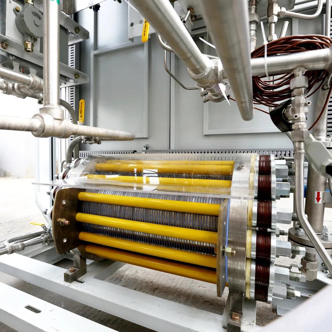 該設備為雙極壓濾式加壓水電解制氫裝置,能夠高效制取氫氣,能耗低、安全性能優越,可年均節省電費百萬元。