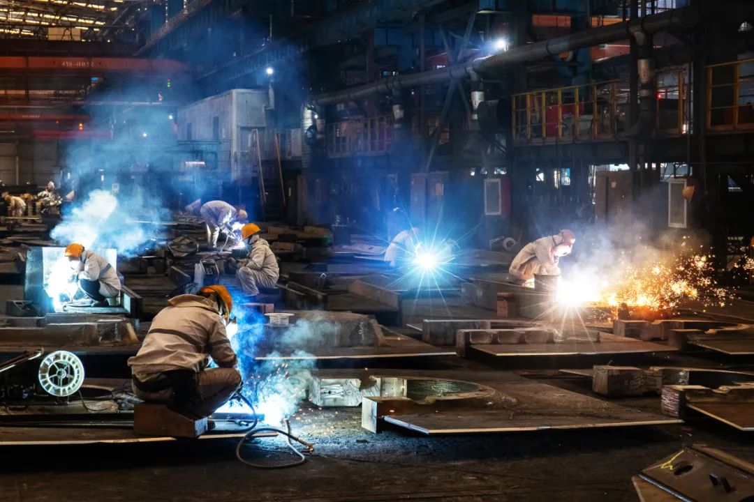 △動(dòng)力部件焊工正在焊接WinGD 8X92機(jī)架