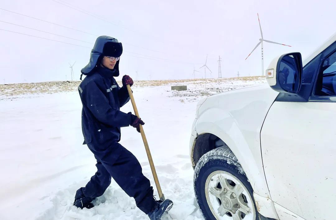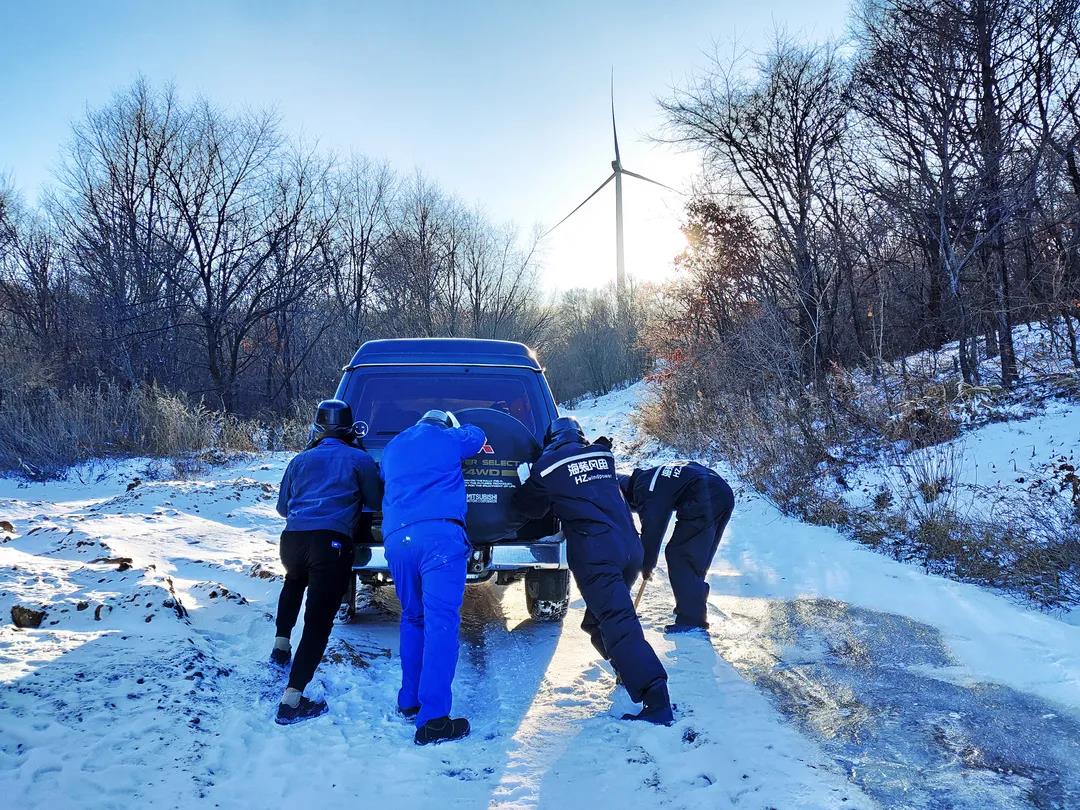 進(jìn)入11月,內(nèi)蒙古自治區(qū)錫林郭勒盟地區(qū)迎來(lái)大面積的暴風(fēng)雪,烏達(dá)萊項(xiàng)目人員在趕往風(fēng)場(chǎng)的路上遭遇積雪路段,雖然氣候嚴(yán)寒,但為了及時(shí)消除機(jī)組故障,大家在積雪路段采取挖雪推車(chē)的方式齊心協(xié)力,一同開(kāi)展清理路面積雪的行動(dòng)。這個(gè)冬日,冰雪阻擋不住海裝追風(fēng)者們勇往直前的步伐,他們只為恪盡職守完成一個(gè)承諾——風(fēng)機(jī)旋轉(zhuǎn)、帶來(lái)光熱。