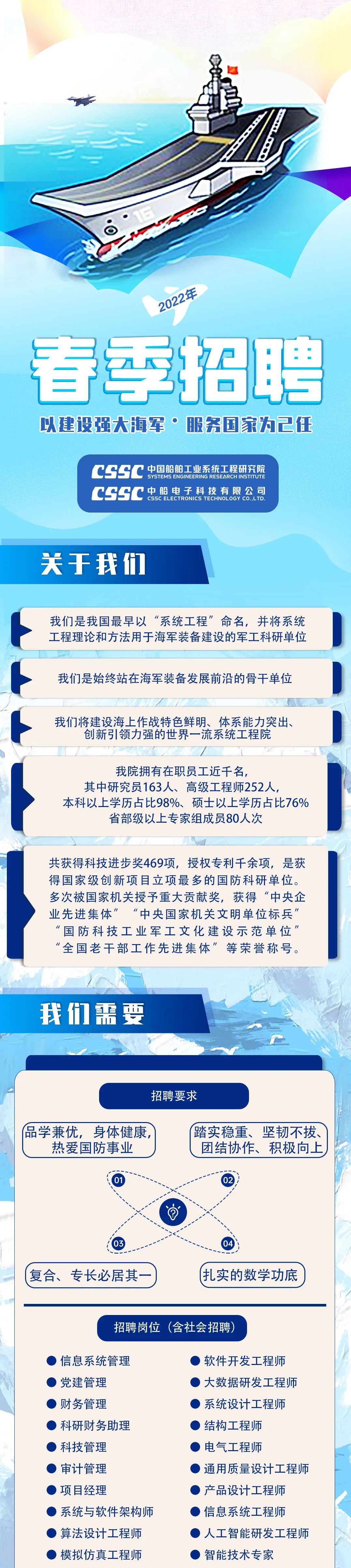 戰(zhàn)艦閃耀,飛鯊翱翔。 大國重器,強國擔當! 這里招賢納士,虛位以待, 讓我們一同感受星辰大海, 讓我們并肩共赴深藍夢想, 這里必將因你而更加精彩!