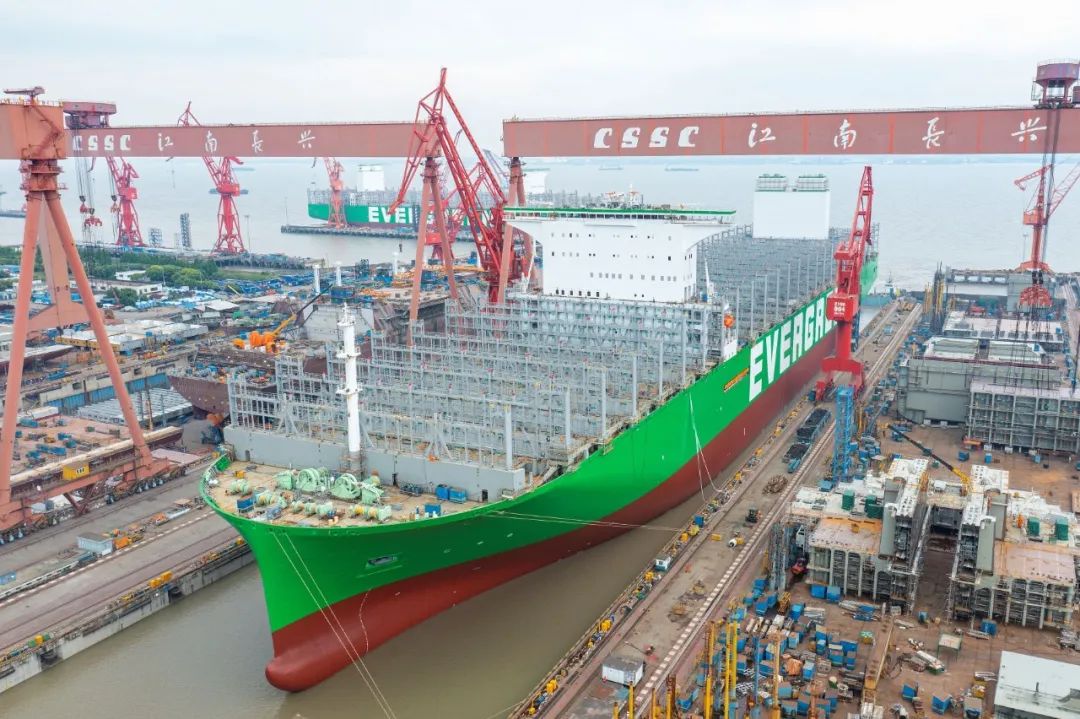 5月19日,中國船舶集團旗下滬東中華雙喜臨門。其建造的全球最大裝箱量24000TEU超大型集裝箱船2號船在長興造船基地順利出塢;建造的13000噸多用途重吊船12號船在浦東廠區命名交付,標志著該項目圓滿收官。這是滬東中華自復工復產以來首次實現一天完成兩大生產節點。