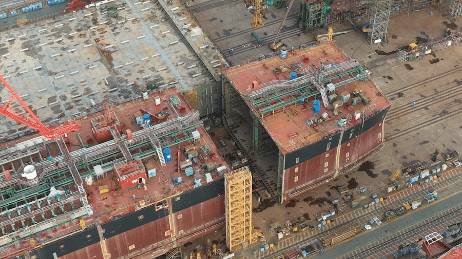 來欣賞“拼積木” ,這就叫環形總段總組工藝。