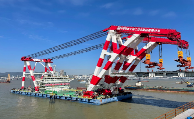 澳氹第四條跨海大橋鋼梁吊裝任務由“鐵建大橋起1”號起重船完成。該船由中國船舶集團七〇八所研發設計,一期“L”型起重臂架為澳氹四橋工程專屬設計和打造,具有完全自主知識產權。