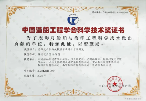 近日,中國(guó)造船工程學(xué)會(huì)發(fā)布了2023年科學(xué)技術(shù)獎(jiǎng)評(píng)審結(jié)果,中國(guó)船舶集團(tuán)七二五所申報(bào)的“高強(qiáng)度止裂鋼關(guān)鍵技術(shù)及評(píng)價(jià)方法研究”榮獲科技進(jìn)步獎(jiǎng)特等獎(jiǎng)。項(xiàng)目團(tuán)隊(duì)歷經(jīng)十余年技術(shù)攻關(guān),在國(guó)際上首次提出了止裂性能大尺寸雙重拉伸試驗(yàn)方法和小尺寸替代試驗(yàn)方法,并成功將其納入國(guó)際船級(jí)社協(xié)會(huì)(IACS)通用規(guī)范,極大提升了我國(guó)在該領(lǐng)域的國(guó)際話語(yǔ)權(quán)和技術(shù)影響力。