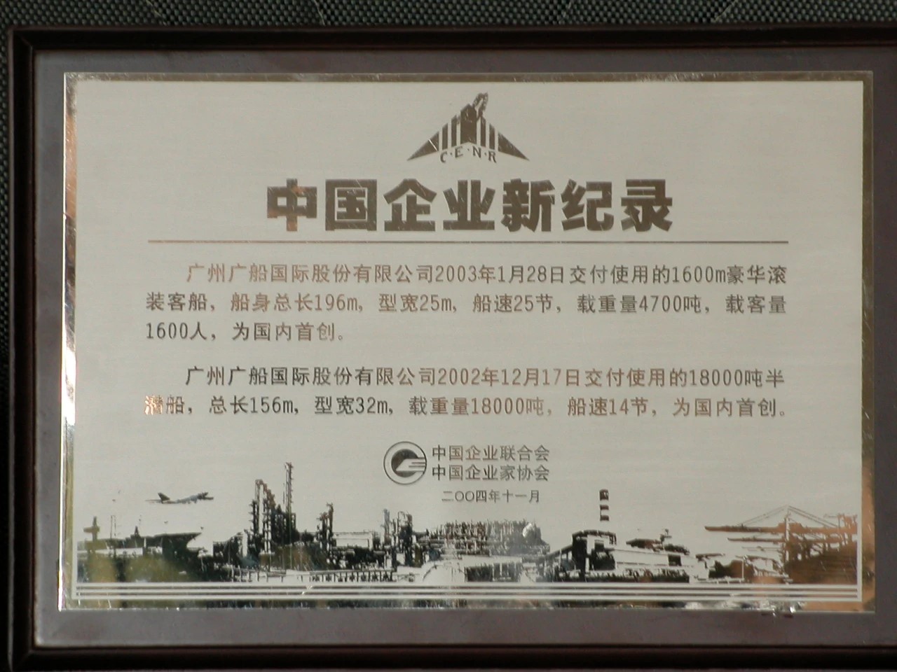 2004年,建造的豪華客滾船和半潛船獲“中國企業(yè)新紀(jì)錄”