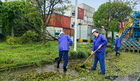 中船動力集團值守人員加強對公司LNG氣站、甲醇氣站、新輔機系統、發動機精密零部件等重點區域和關鍵設施設備的安全隱患排查、重點防護和監控。臺風過后,組織力量開展排水和道路樹枝清理,為節后生產有序運行提供保障。