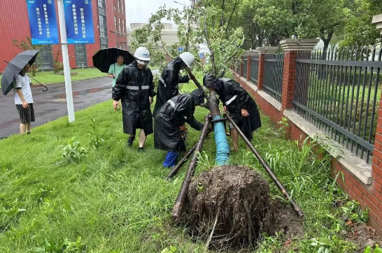 中船九院組織華船物業針對辦公大樓每個樓層門窗關閉情況進行“地毯式”檢查,對重點區域進行加固,安排人員巡查,落實辦公樓區域應急值班人員24小時待命。臺風來襲期間,中船九院針對受大風大雨影響的重點部位再組織有效加固。