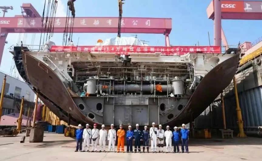 8月4日,為希臘Performance Shipping公司建造的11.4萬噸成品油船順利下塢。該船建造期間,外高橋造船項目團(tuán)隊以分總段完整性下塢為目標(biāo),緊扣“三取消、四清零、工序前移”管理手段開啟總組工作。截至下塢,該船艉半船分段完工率實現(xiàn)100%。