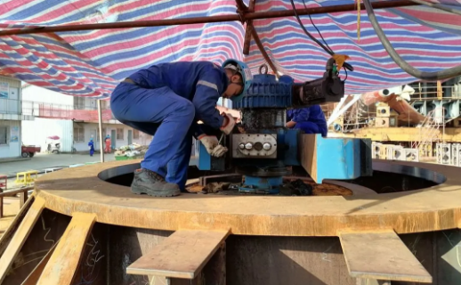 ????武船集團高質量完成了基座上船焊接前粗鏜孔工作,外徑φ3400毫米、內徑φ2670毫米的基座內孔和上平面加工一次成型,報檢一次合格,受到質檢部門及船東的一致好評,被評為“優等品”。