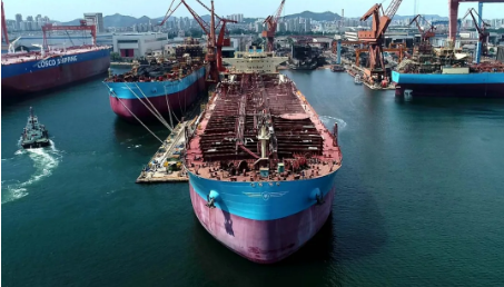 1月4日,中國船舶集團旗下大船集團為馬士基油輪建造的11.5萬噸原油/成品油船44號船簽字交付。該船總長250米,型寬44米,型深21.9米,載重噸為11.5萬噸,結(jié)構(gòu)吃水15.35米,設(shè)計航速14.5節(jié),掛新加坡旗,入英國勞氏船級社。為了滿足節(jié)能設(shè)計要求,該船螺旋槳前方的船體艉軸管上安裝節(jié)能型導(dǎo)輪,螺旋槳輕轉(zhuǎn)裕度不低于3%。
