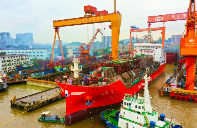 中國(guó)船舶集團(tuán)旗下黃埔文沖建造的9500立方米雙燃料動(dòng)力多用途氣體運(yùn)輸船首制船在近日出塢。