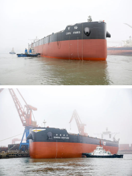 1月12日,中國船舶集團(tuán)旗下北海造船2號塢21萬噸16號、23號散貨船出塢,順利實現(xiàn)大節(jié)點(diǎn)計劃,迎來2023年開門紅。