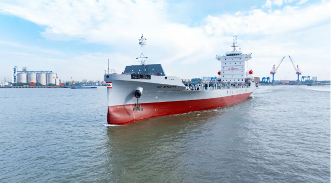 近日,由上船院設計,武昌造船為CA SHIPPING建造的1100TEU集裝箱船3號船提前交付。