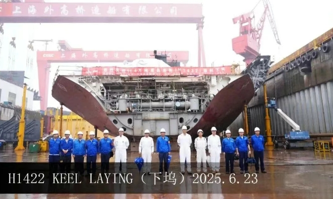 在該船的船建造過(guò)程中,建造團(tuán)隊(duì)齊心協(xié)力,與船東船檢密切合作,合理調(diào)配生產(chǎn)資源,統(tǒng)籌物流,確保分段按計(jì)劃及時(shí)供應(yīng),順利完成了總段塞軸裝槳及泵艙完整性目標(biāo)。目前,該船關(guān)鍵路徑分段已全部配齊,整船分段結(jié)構(gòu)全部完工,為下塢后的快速搭載創(chuàng)造了有利條件。