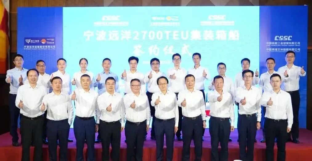 10月21日,中船集團旗下黃埔文沖聯(lián)合中船貿(mào)易,與寧波遠洋運輸股份有限公司正式簽署4艘2700TEU集裝箱船的建造合同。此次簽約的集裝箱船均由中船集團旗下上船院設(shè)計,采用先進的設(shè)計理念和環(huán)保技術(shù),以滿足寧波遠洋對船舶高效、經(jīng)濟、環(huán)保的要求。