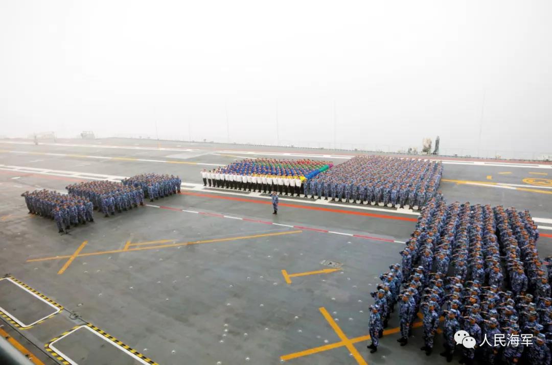 2017年7月,遼寧艦編隊抵達香港,參加香港回歸祖國暨解放軍進駐香港20周年慶?;顒印?00余名官兵在遼寧艦飛行甲板上列隊排成“香港你好”字樣,以海軍獨有的方式向香港市民表示親切、誠摯問候。
