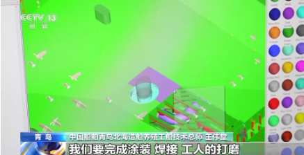 中國船舶青島北海造船養(yǎng)殖工船技術總師 王偉堂:魚排是第一次用在船舶上,整個魚排空間比較小,首先考慮就是怎么來裝。在很小的空間內,我們要完成涂裝、焊接、工人的打磨,還有系統調試。我們前期跟設計院做了深入的探討,尋求了一個最佳的方案,就形成了目前這個狀態(tài)。